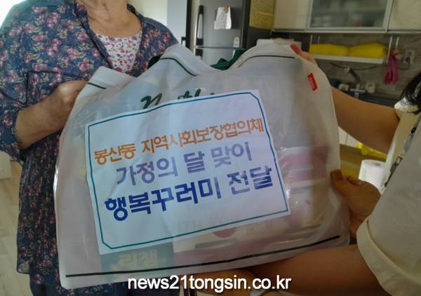 원주시 봉산동 지역사회보장협의체(위원장: 엄미남, 진왕국)는 지난 22일(수) 가정의 달을 맞이하여 홀몸 어르신 등 관내 저소득층 20가구에 ‘행복 꾸러미’를 전달하였다.