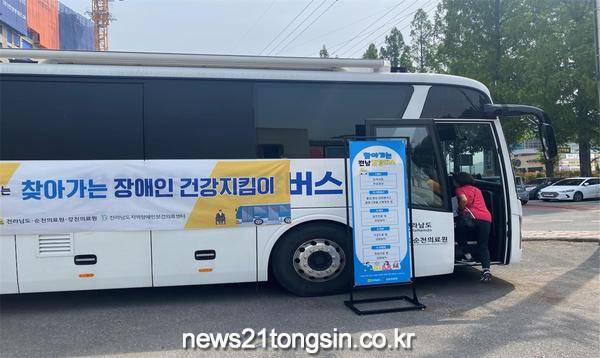 전남건강버스는 의료기관에 직접 방문이 어려운 장애인을 위한 의료 서비스 차량이다.