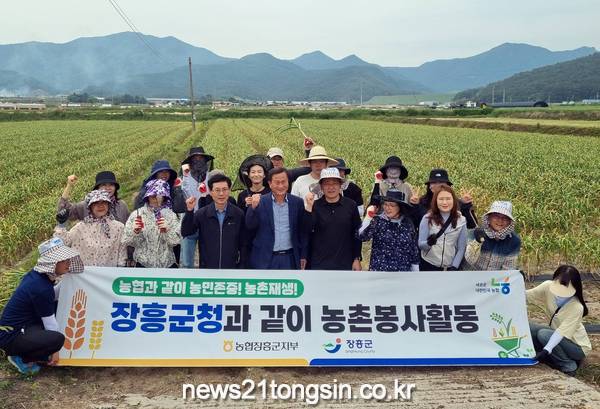 봄철 농촌일손돕기는 6월 14일까지 중점 추진할 계획으로 지난 5월 22일 장흥군청 농산유통과와 농협중앙회 장흥군지부 직원 20명은 대덕읍 소재 농가를 방문하여 마늘수확 작업을 실시하였다.