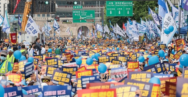 더불어민주당 등 7개 야당과 시민단체 등 만여 명이 참석했는데, 국민의힘은 '떼쓰기 정치'라고 비판했다.