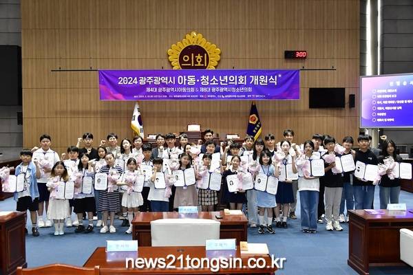 광주광역시는 25일 광주시의회 본회의장에서 제4대 아동의회와 제8대 청소년의회 개원식을 개최했다.