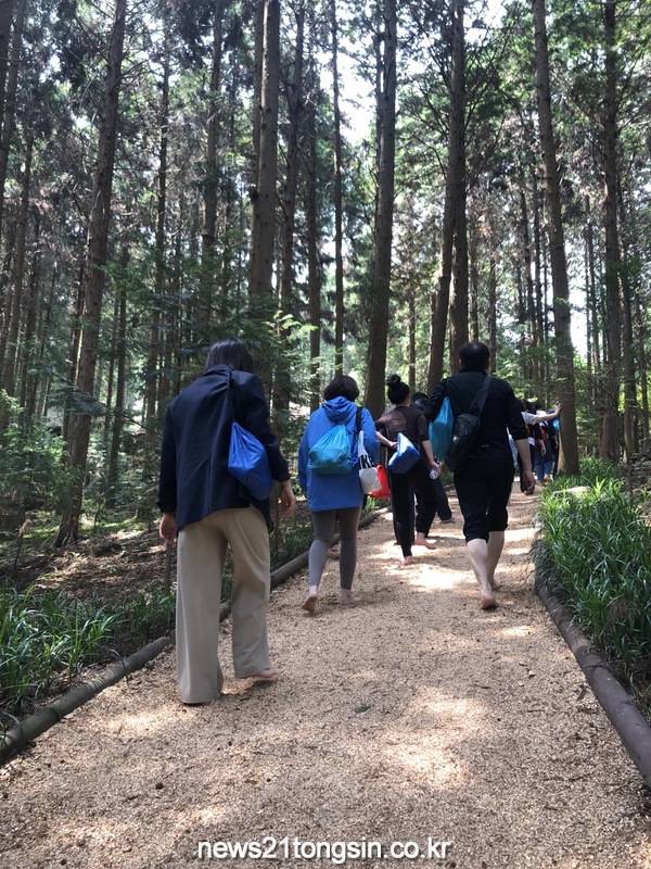 프로그램은 산림치유사와 함께 피톤치드 가득한 편백숲 톱밥길 맨발걷기, 해먹 쉼, 마음사랑 도장만들기 등 체험활동과 마음건강교육으로 진행됐다.