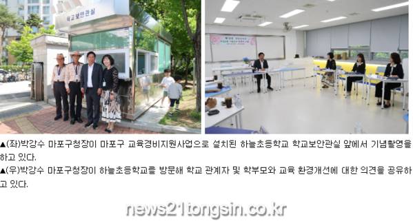 박강수 마포구청장은 “미래의 주역인 우리 학생들은 건전하고 안전한 환경에서 마음껏 공부하고 뛰놀 수 있어야 한다고 생각한다”라며 “마포구는 앞으로도 교육 환경개선을 위해 많은 관심을 갖고 지원을 아끼지 않겠다”라고 말했다.