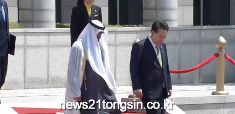 윤석열 대통령과 부인 김건희 여사가 정상회담에 앞서 열린 공식 환영식에서 무함마드 대통령을 직접 맞이했다.
