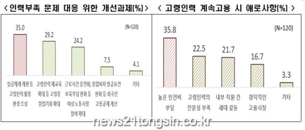 기업들은 저출산․고령화에 따른 인력부족 문제 대응을 위해 정부가 가장 시급하게 추진해야 할 정책으로 임금체계 개편 등 고령인력 활용 환경 조성(35.0%)을 꼽았다.