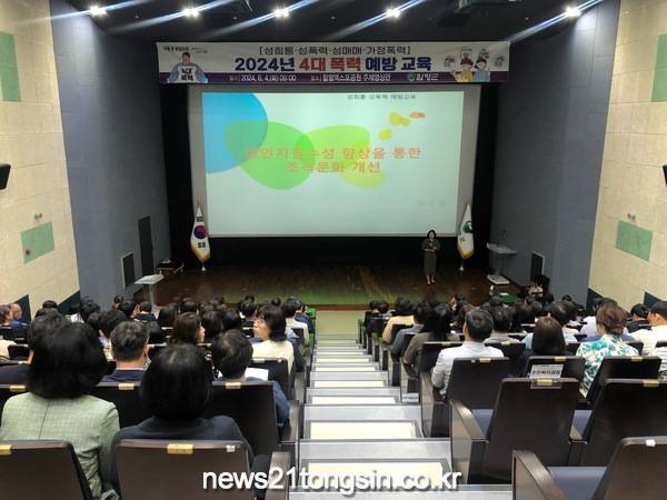 [뉴스21통신 장두진기자] 전남 함평군은 4일 함평엑스포공원 주제영상관에서 직원 250명을 대상으로 2024년 4대 폭력(성희롱, 성폭력, 성매매, 가정폭력) 예방 교육을 실시했다.