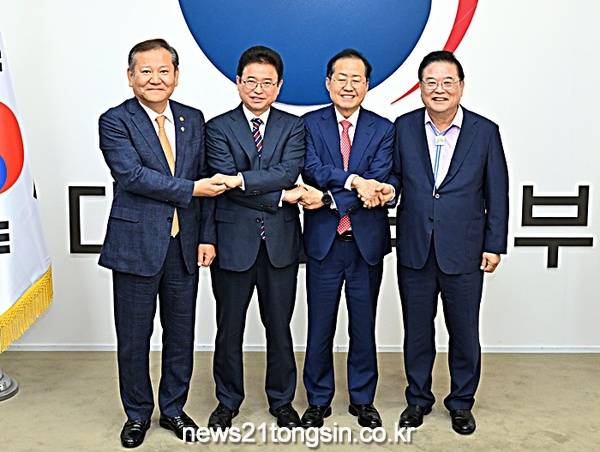 6월 4일 오후 3시 정부서울청사에서 이상민 행정안전부장관, 우동기 지방시대위원장, 홍준표 대구광역시장, 이철우 경상북도지사가 한자리에 모여 대구·경북 통합 추진방안을 논의했다.