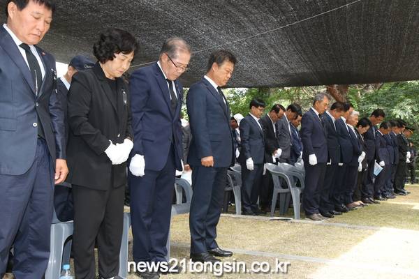 참석자들은 10시 정각에 울린 전국 동시 사이렌에 맞춘 순국선열과 호국영령에 대한 묵념을 시작으로 8098부대의 조총 발사, 헌화․분향, 이학수 시장 추념사, 윤준병 국회의원 추도사, 고경윤 시의장 추도사로 이어졌다.