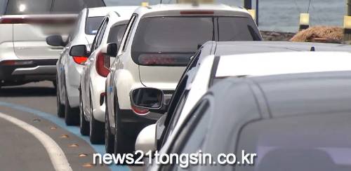 근처 카페 손님과 바다를 보러 온 관광객들이 자전거 도로에 주차를 하고 있는 건데, 법률적 근거가 없어 단속은 전혀 이뤄지지 않는다.