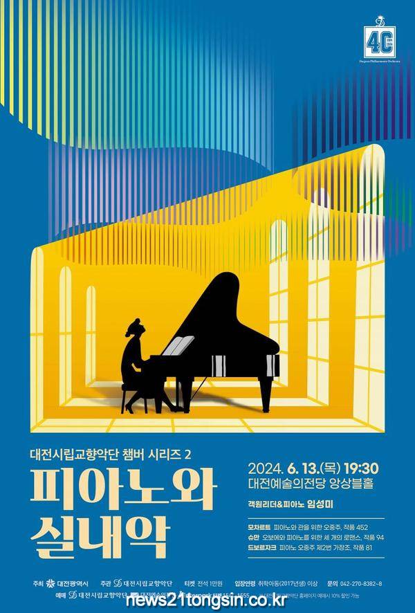 대전시립교향악단은 13일(목) 오후 7시 30분 대전예술의전당 앙상블홀에서 ‘챔버 시리즈 2, 피아노와 실내악’ 연주회를 선보인다.