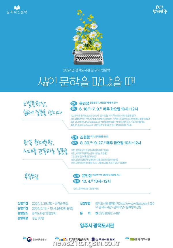 양주시(시장 강수현)가 관내 광적도서관에서 ‘삶이 문학을 만났을 때’라는 주제로 ‘길 위의 인문학’ 프로그램을 운영한다.