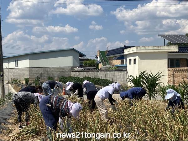 10일 완주군에 따르면 최근 보건소 직원 10명은 마늘 농가를 찾아 마늘 수확에 힘을 보탰다.