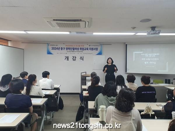 대전 중구(구청장 김제선)는 10일 중구 거주 경력단절여성(육아·가사 등으로 경력이 단절된 여성) 30명을 대상으로‘중구 경력단절여성 취업교육’을 개강했다고 밝혔다.