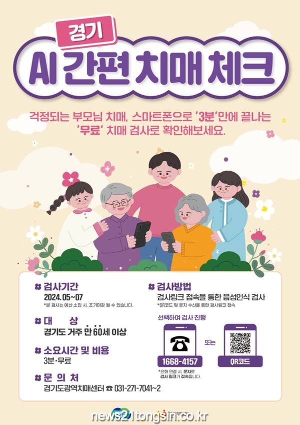 경기도에 거주하는 60세 이상 주민을 대상으로 마련한 해당 서비스는 스마트폰이나 태블릿PC를 이용한 음성 인식 검사다. 치매안심센터를 방문하지 않고도 간편하게 치매 위험도를 약 3분 만에 확인할 수 있다.
