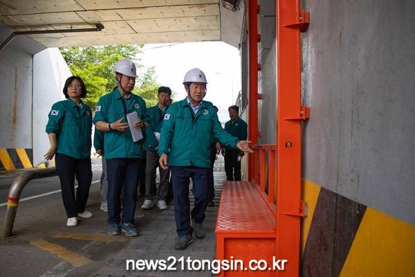 이어 침수취약지역인 다산1동 중촌1·2지하차도를 방문해 저류조와 배수로 및 펌프 시설을 점검했다. 중촌1지하차도는 지난 2020년 8월 집중호우로 침수피해가 발생했던 곳이다.