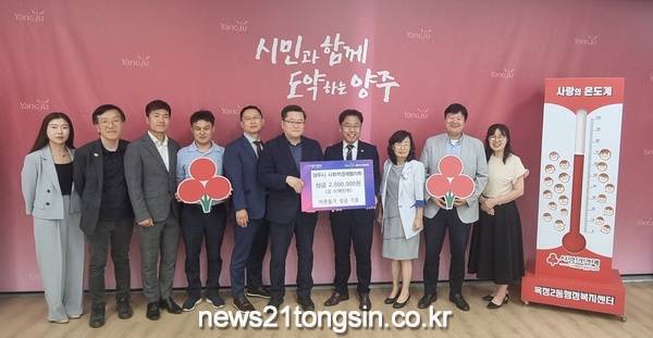 양주시 옥정2동(동장 이윤규)이 지난 7일 사회적경제협의회(회장 맹두열)에서 관내 취약계층 지원을 위해 사용해 달라며 후원금 200만 원을 행정복지센터에 전달했다고 밝혔다.