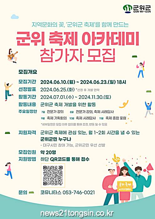 군위군은 지역의 축제 전문가 양성을 위한 ‘군위 축제 아카데미’ 참가자를 모집한다.