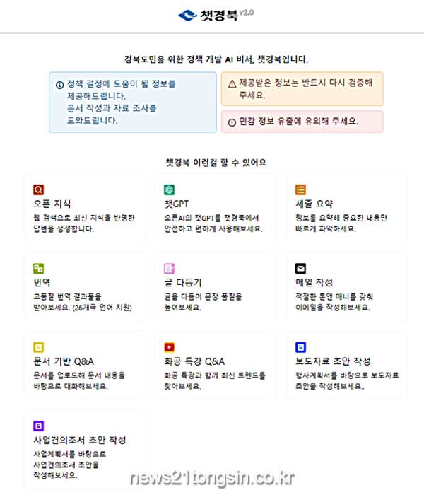 경상북도가 생성 AI를 활용한 행정업무 지원 서비스를 시작한다. 경북연구원이 개발, 제공 중인 챗경북 서비스 내에 행정업무에 특화된 AI 서비스 3종을 직원들을 대상으로 제공한다.