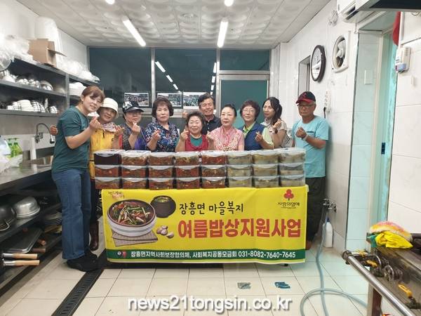 양주시 장흥면 지역사회보장협의체(공동위원장 임신우)에서 지난 11일 여름철을 맞이하여 관내 어려운 이웃들을 위해 무더운 여름을 맛있는 여름 김치로 시원하게 보낼 수 있는 ‘여름 밥상’ 행사를 진행했다.