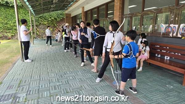 광산구 양궁체험장에서는 안산, 기보배 등 세계적 선수들을 지도한 김성은 감독에게 직접 양궁을 배우고, 활을 쏘는 체험을 즐겼다.