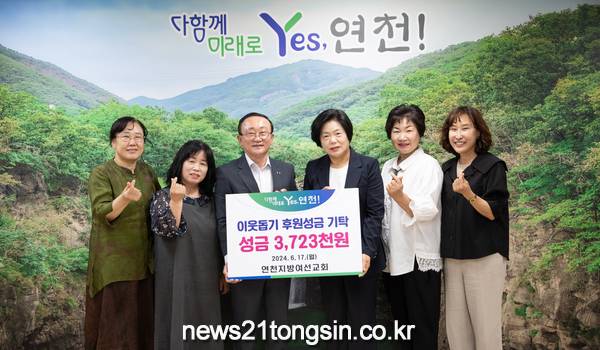 연천군은 지난 17일 연천지방여선교회 채명성 회장과 임원들이 연천군청을 방문해 관내 저소득 아동을 위한 성금 372만원을 기탁했다고 밝혔다.
