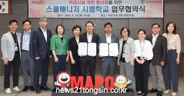이날 협약식에는 박강수 마포구청장과 조희연 서울시 교육감, 구청과 교육청 업무 관계자들이 참석해 스쿨매니저 사업 내용을 공유하고 협약을 체결하는 시간을 가졌다.