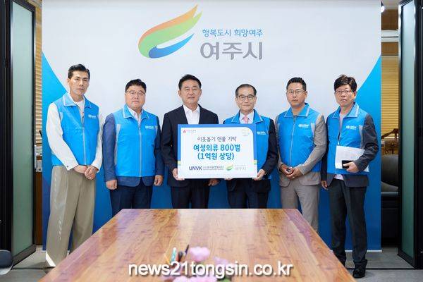 (사)한국UN봉사단(이사장 안헌식)에서 지난 17일 ㈜크레송(대표 심만섭)과 ㈜지아스카라(대표 이성환)가 후원하는 여성의류 1억원 상당을 여주시(시장 이충우)에 기탁하였다.