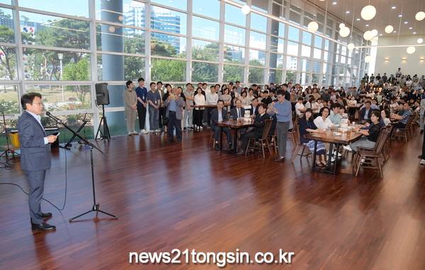 강 시장은 “당장 8월부터는 인공지능(AI)을 도입해 당직제가 없어진다. 변화 중 아주 작은 변화일 뿐이고, 시민들에게 열린공간으로 재탄생한 청사 또한 공간의 작은 변화이다”며 “이 작은 변화들로 만족도는 더욱 높아졌다. 이제 광주 전체의 큰 변화가 필요하다”고 강조했다.
