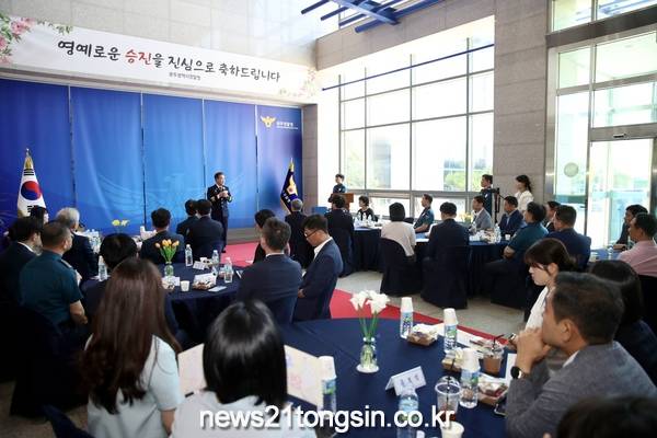 ▲ 특별승진임용식 윤희근 경찰청장은 “투자리딩방 사기와 불법대부업 등 민생침해 범죄를 근절하기 위하여 합심하여 노력한 결과가 돋보였으며, 국민의 평온한 일상회복을 위해 노력해온 여러분들의 노고에 깊이 감사드린다.”라며, 특별승진 대상자뿐만 아니라 장시간 함께 고생한 팀원 동료들의 노고도 함께 격려하였다. 이와 더불어, “앞으로도 국민의 평온한 일상을 지킬 수 있도록 신종사기 범죄 등 민생침해 범죄를 철저하게 수사해 달라.”라고 당부하였다.