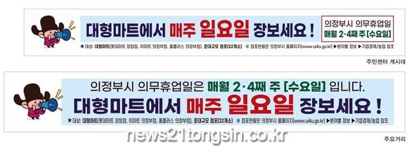 의정부시(시장 김동근)는 대형마트와 기업형슈퍼마켓(SSM) 의무휴업일을 둘째‧넷째 주 일요일에서 수요일로 변경했다고 18일 밝혔다.