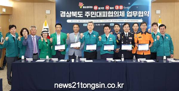 도는 18일 경북도청에서 이철우 경북도지사와 이강덕 경상북도시장군수협의회장, 김철문 경상북도경찰청장, 박근오 경상북도소방본부장, 엄태봉 경상북도이통장연합회장, 은종현 경상북도자율방재단연합회장이 참석한 가운데 경상북도 주민대피협의체 업무협약을 체결했다.