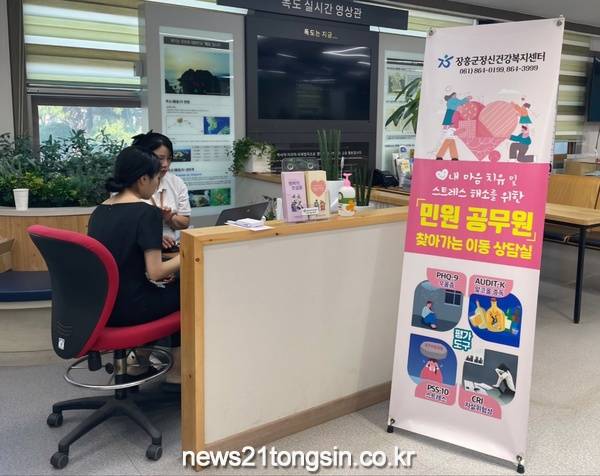 장흥군청 민원실에서 진행된 이동상담은 우울증 선별검사(PHQ-9), 스트레스 진단, 정신건강검사 등이 이뤄졌다.