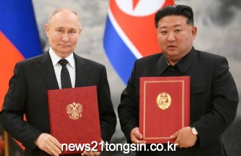 스푸트니크 통신 등 러시아 언론에 따르면 이날 김정은 북한 노동당 총비서와 블라디미르 푸틴 러시아 대통령은 ‘포괄적 전략 동반자 협정’에 서명했다.