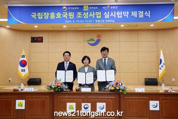 장흥군은 19일 군청 회의실에서 국립장흥호국원 조성사업 실시협약을 체결했다고 밝혔다.