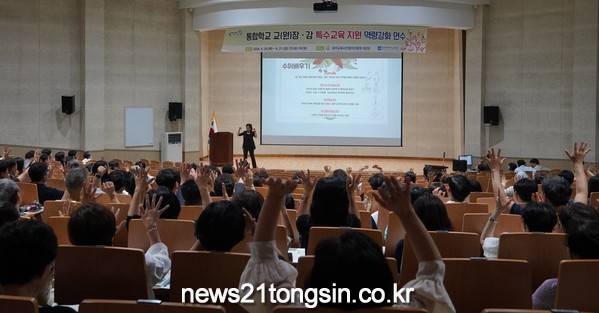 광주시교육청이 지난 20일과 21일 양일간 광주교육시민협치진흥원 대강당에서 관내 통합학교 교(원)장·감 500여 명 대상으로 ‘특수교육 지원 역량강화 연수’를 실시했다.