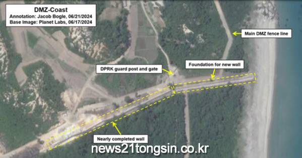 사진을 분석한 미국의 제이콥 보글(Jacob Bogle) 민간위성 분석가는 21일 자유아시아방송(RFA)에 서쪽 약 305m 구간은 장벽 건설이 거의 완성됐고, 동쪽 164m 구간은 새 장벽을 위한 지반 공사를 하고 있는 것으로 보인다고 밝혔다.