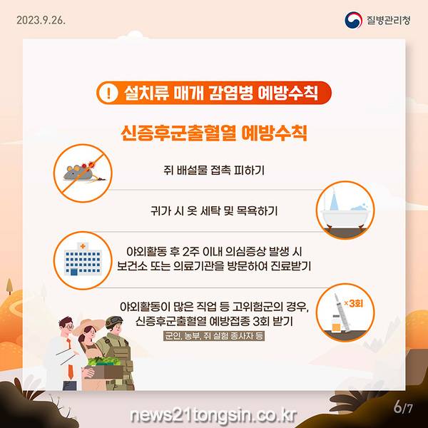 거창군은 야외활동이 잦은 농업인, 군인, 농부 등 설치류 매개 바이러스에 노출되기 쉬운 주민을 대상으로 신증후군출혈열(HFRS) 무료 예방접종을 연중 시행하고 있다고 24일 밝혔다.