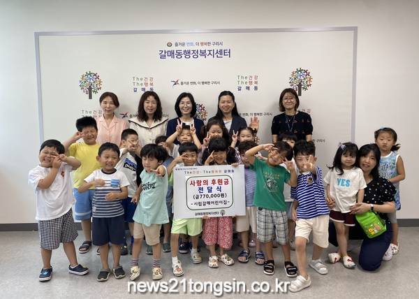 구리시(시장 백경현) 갈매동 행정복지센터(동장 한진숙)는 6월 21일 시립 갈매어린이집으로부터 사랑의 후원금 77만 원을 전달받았다.