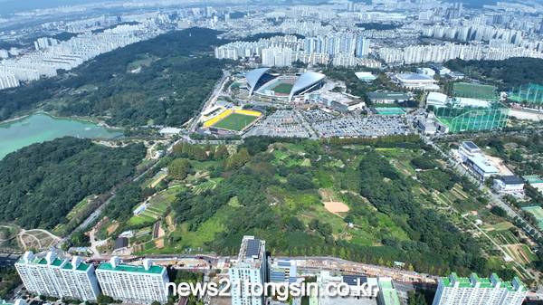 ▲ 사진_중앙공원 전경민간공원특례 중앙공원1지구 사업 추가 공공기여를 이끈 주인석 민간공원팀장(사무관)이 광주시 적극행정 최우수 공무원으로 선정됐다.