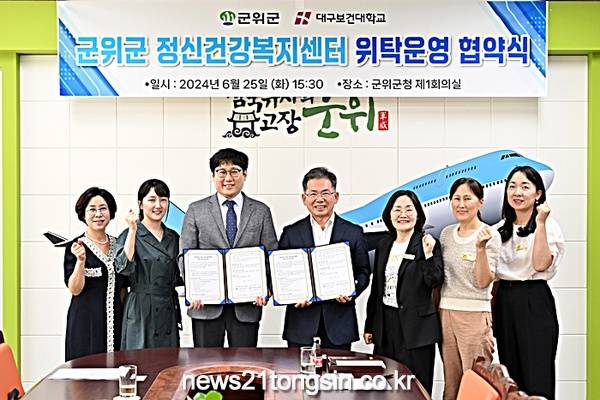 군위군보건소는 25일 대구보건대학교 산학협력단과 군위군 정신건강복지센터 운영을 위한 민간위탁 업무 협약을 체결했다.