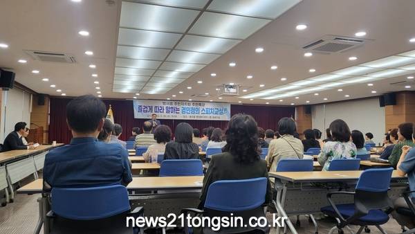 (뉴스21통신/우정석기자) = 울주군 범서읍 주민자치회(회장 신무상)가 지난 26일 범서읍 행정복지센터 중회의실에서 주민자치센터 수강생과 지역주민을 대상으로 ‘즐겁게 따라 말하는 경민정의 스피치 교실’ 특강을 실시했다.