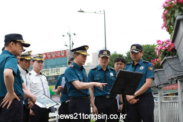 광주경찰청(치안감 한창훈)은 6월 27일(목) 오전, 광주지역의 대표적인 재래시장인 양동시장을 찾아 여름철 자연재난 대비 침수우려지역에 대한 현장점검을 실시했다.