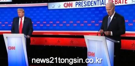 서로 중범죄자, 거짓말쟁이라고 비난하며 상대방이 최악의 대통령이라고 손가락질했다. 바이든 대통령과 트럼프 전 대통령이 차례로 무대에 올랐지만 악수는 없었다.
