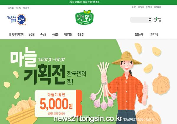 이번 행사는 7월 1일부터 7일까지 진행되며, 마늘상품 1만 원 이상 구매 시 5천 원 할인쿠폰을 지급한다.