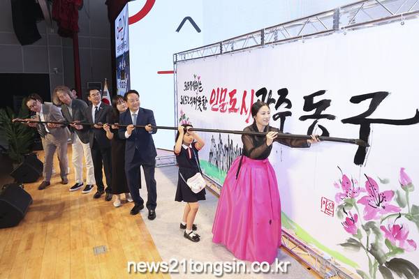 특히 임택 구청장은 주민 대표들과 함께 도시브랜드 ‘인문도시 광주 동구’를 붓으로 그려나가는 캘리그라피 퍼포먼스를 선보여 이목을 사로 잡았다.