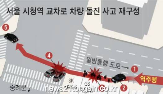 지난 1일 오후 9시 25분쯤 서울 시청역 역주행 참사 가해자 0모(68)씨가 운전한 차량은 서울 중구 웨스틴조선호텔 지하 주차장을 빠져나왔다. 소공로 교차로에서 우회전해 시청광장 방향으로 진입해야 할 차량은 돌연 그대로 직진해 세종대로 방면으로 역주행을 시작한다.