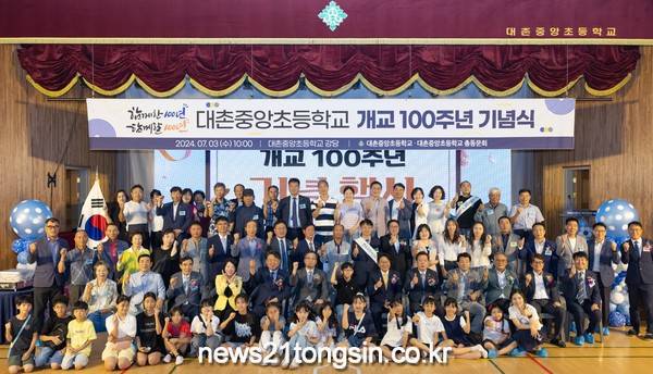 대촌중앙초등학교는 3일 학생, 교사, 동문 등이 참여한 가운데 ‘개교 100주년 기념식’을 개최했다.