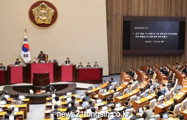 우원식 국회의장이 3일 국회 본회의에서 ‘채 상병 특검법’을 상정했다.