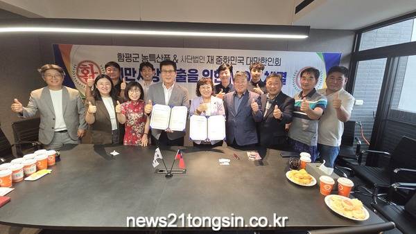 [뉴스21통신 장두진기자] 전남 함평군이 지난 29일 타이베이에 위치한 대만 한인회 사무실에서 (사)재중화민국대만한인회와 우수 함평 농특산품의 대만 시장 진출을 위한 협력 MOU를 체결했다.