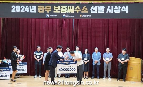 농협경제지주 축산경제는 지난 1일 경기 농협 안성교육원 대강당에서‘2024년 상반기 한우 보증씨수소 선발 시상식’을 개최했다고 3일 밝혔다.